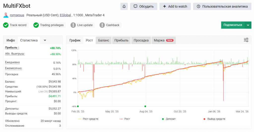 Верифицированный мониторинг доступен на MyfxBook и MQL5 — всё прозрачно и открыто.