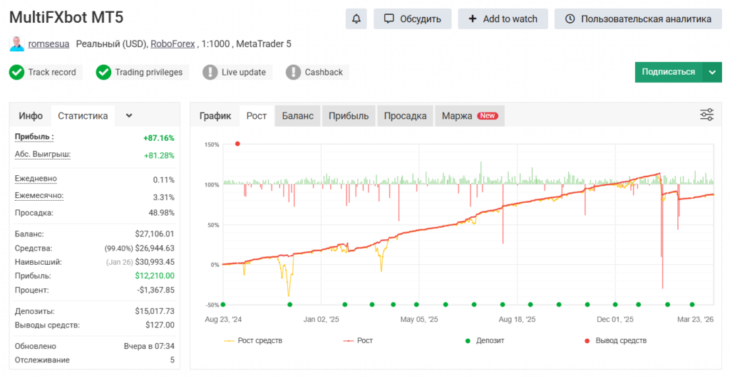 Этот робот прошёл тестирование на реальном счёте и подтвердил эффективность: